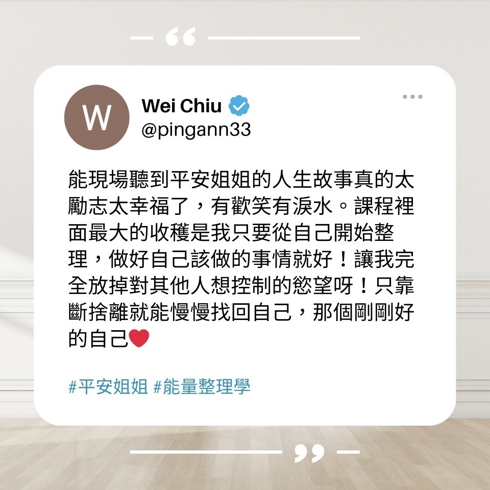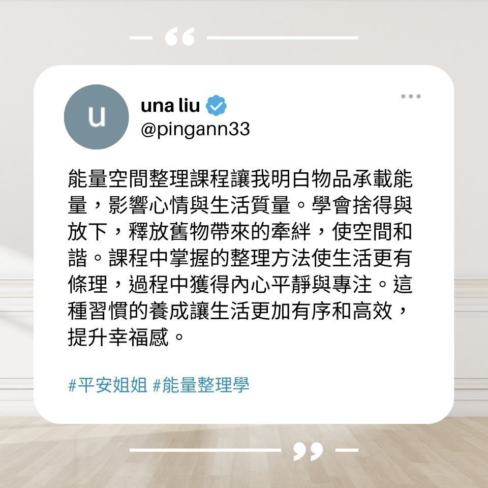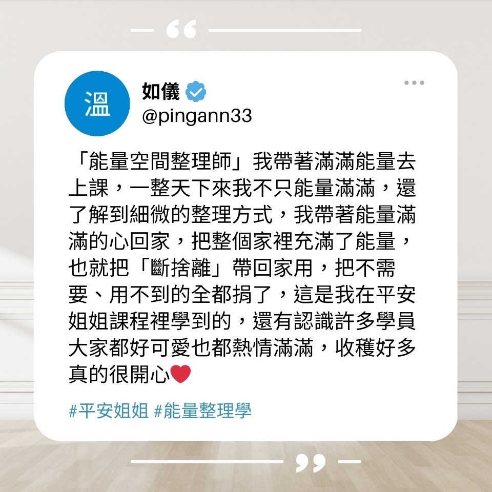(能量整理學) 這不僅是課程,而是一場靈魂的覺醒。通過人生整理課,您將釋放壓力、重建內在能量,找到真正的自我。立即報名,開始改變命運的旅程!