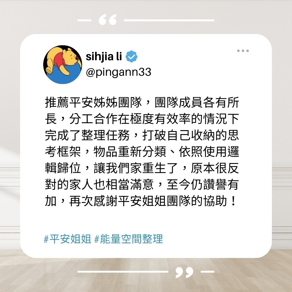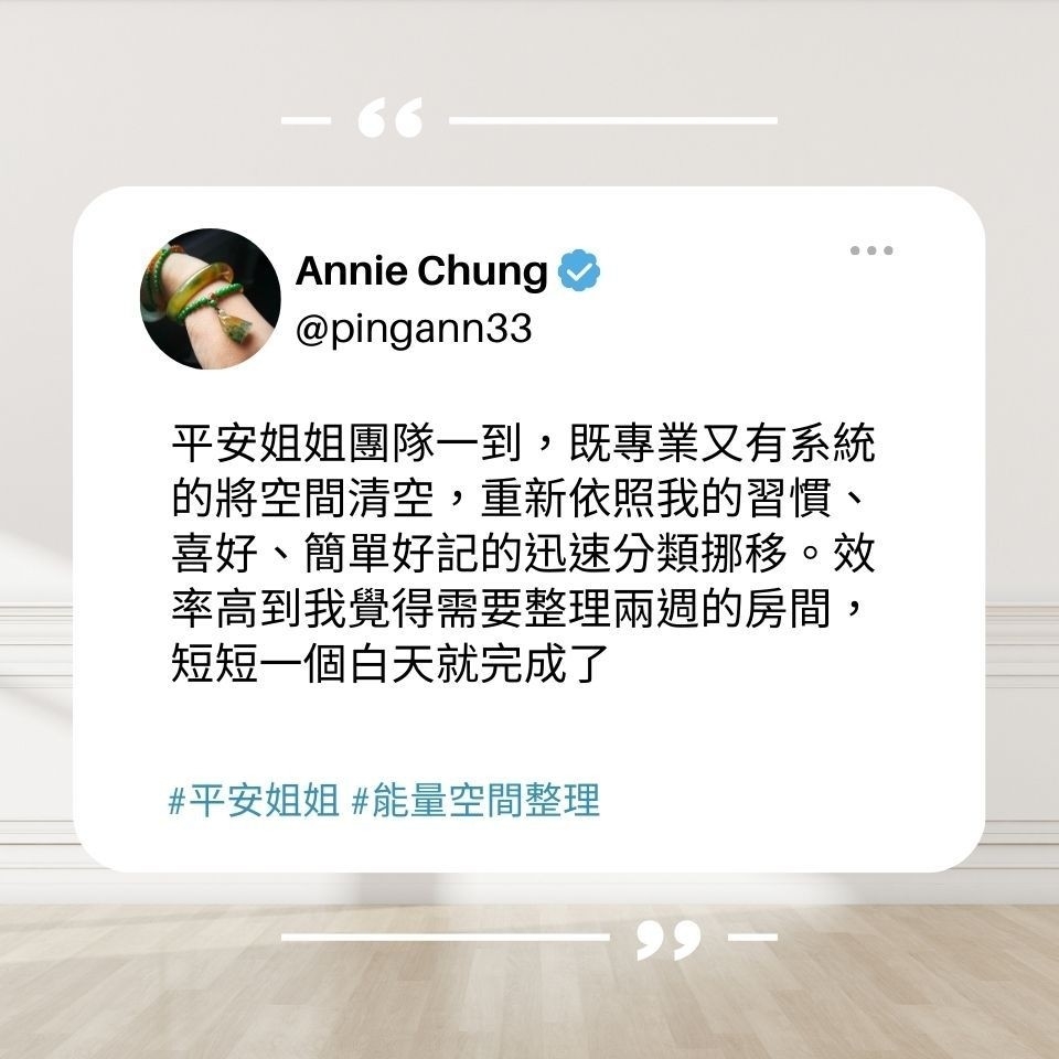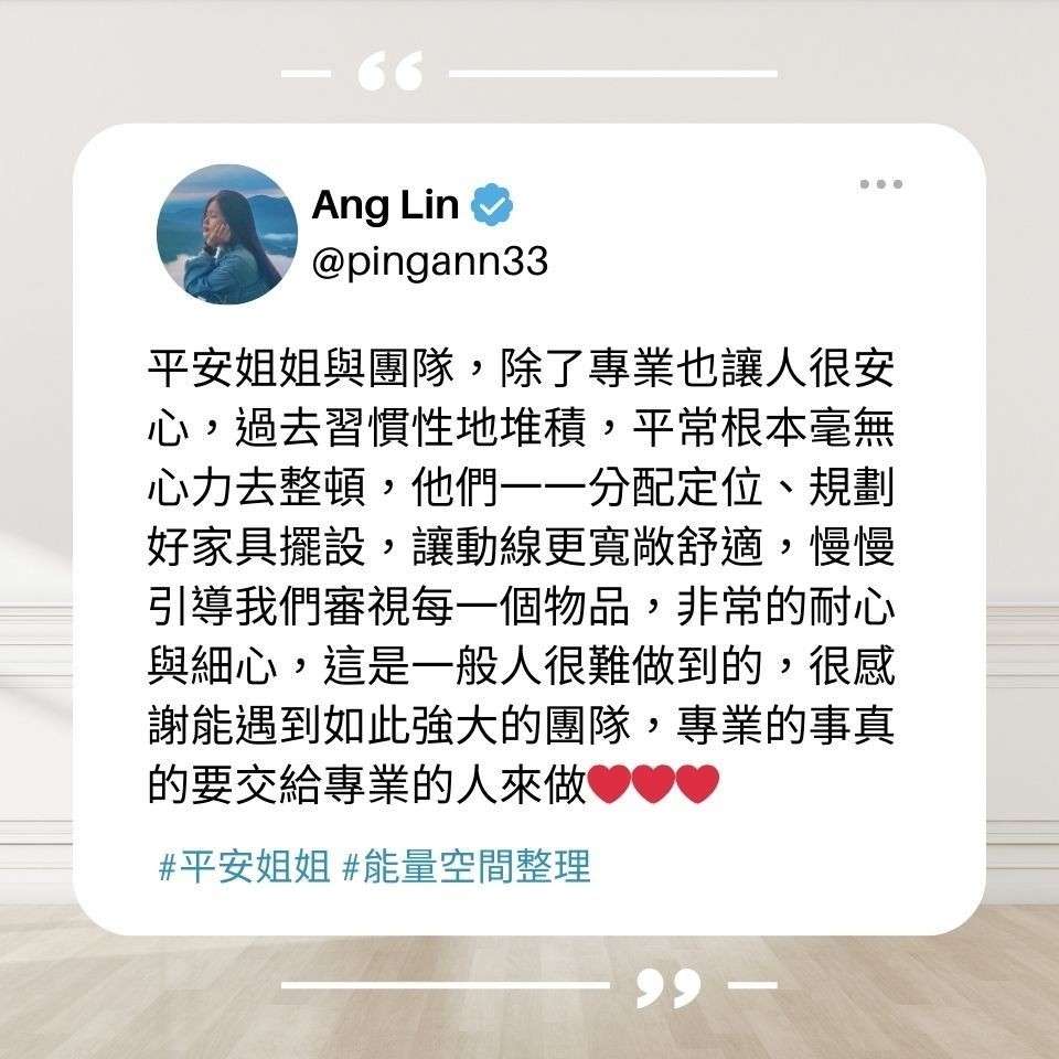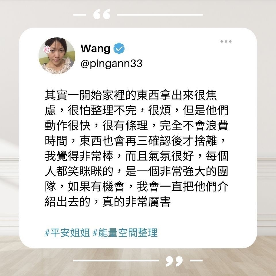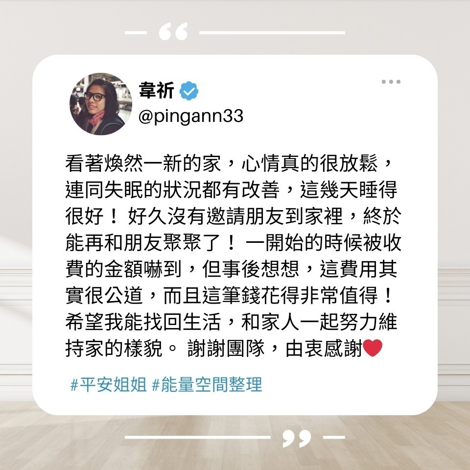 深度人員培訓,每一位整理師皆出自於平安姐姐之手親自培訓,專業與效率都是必備條件。