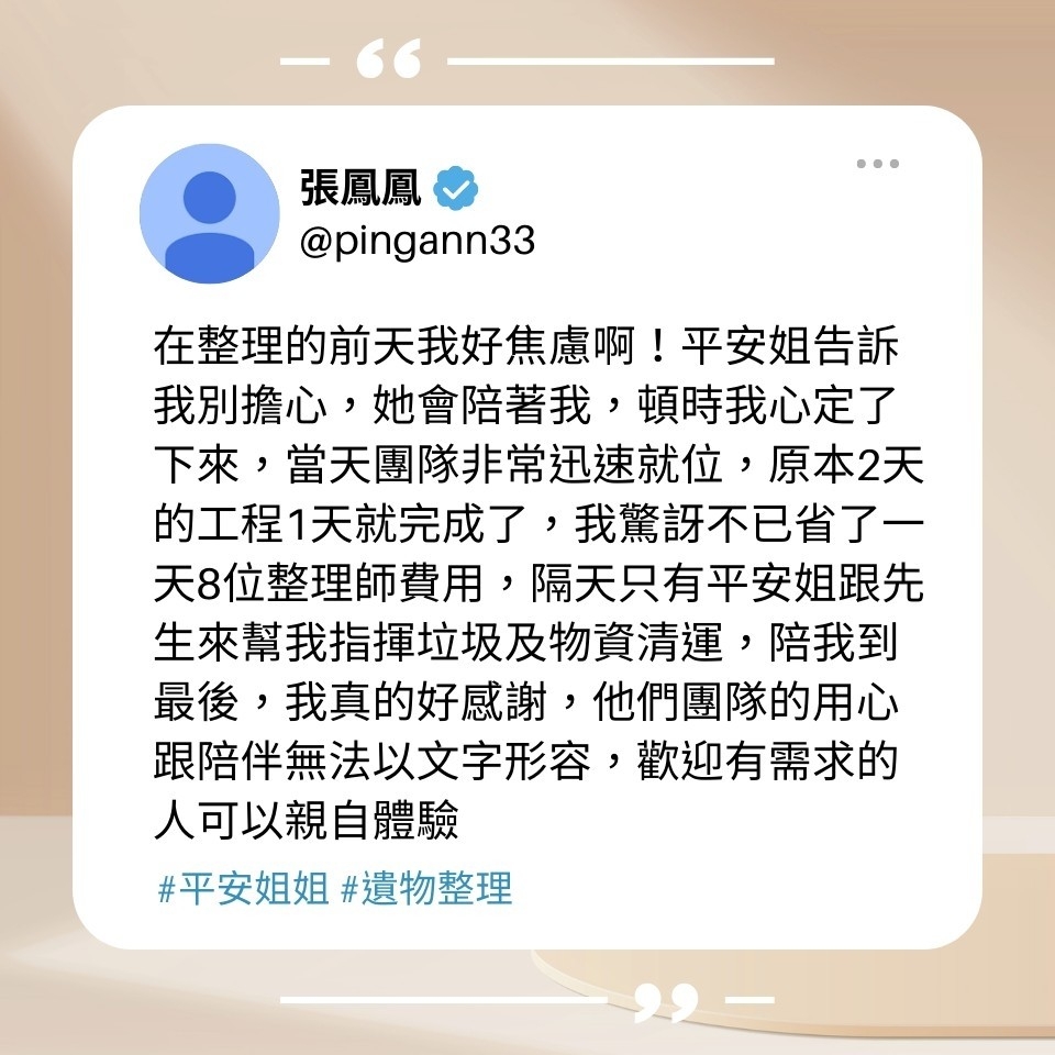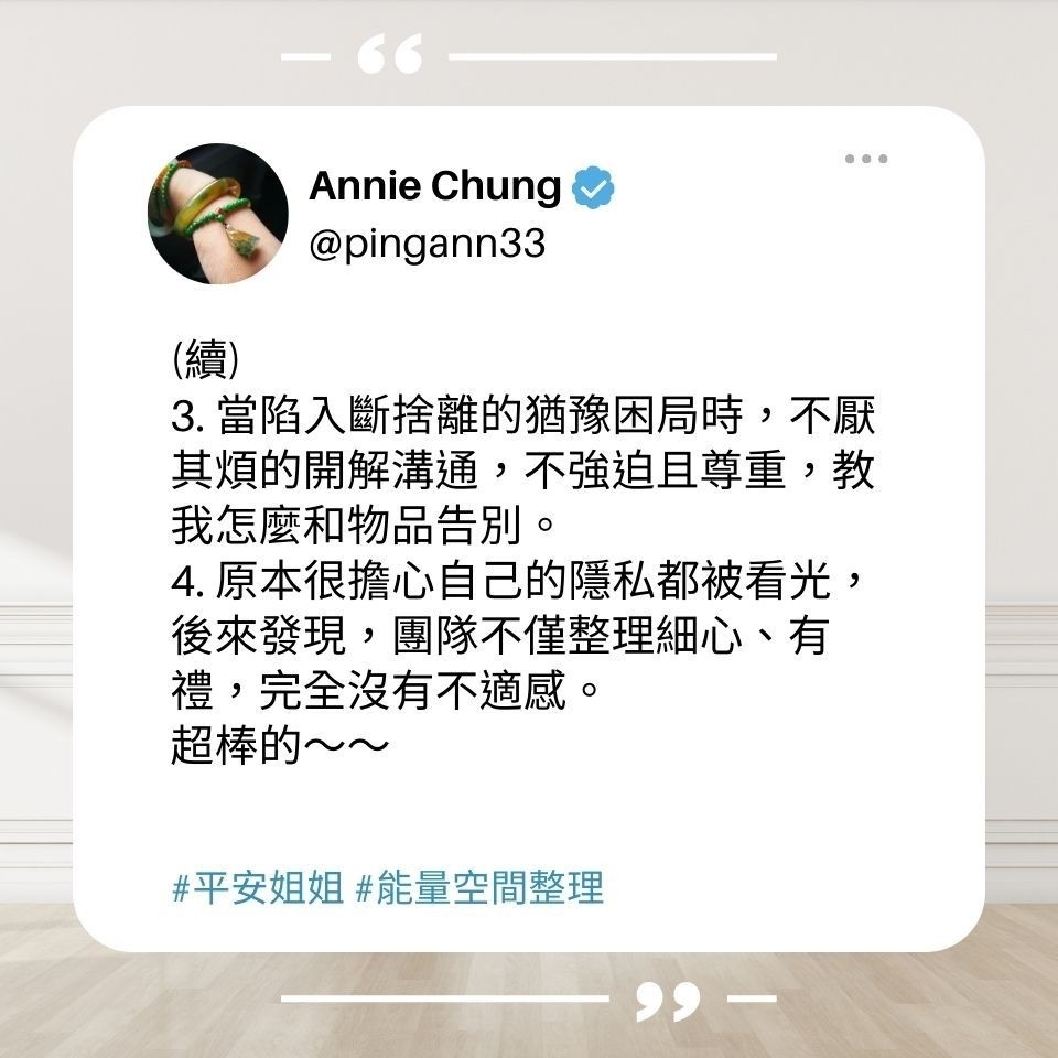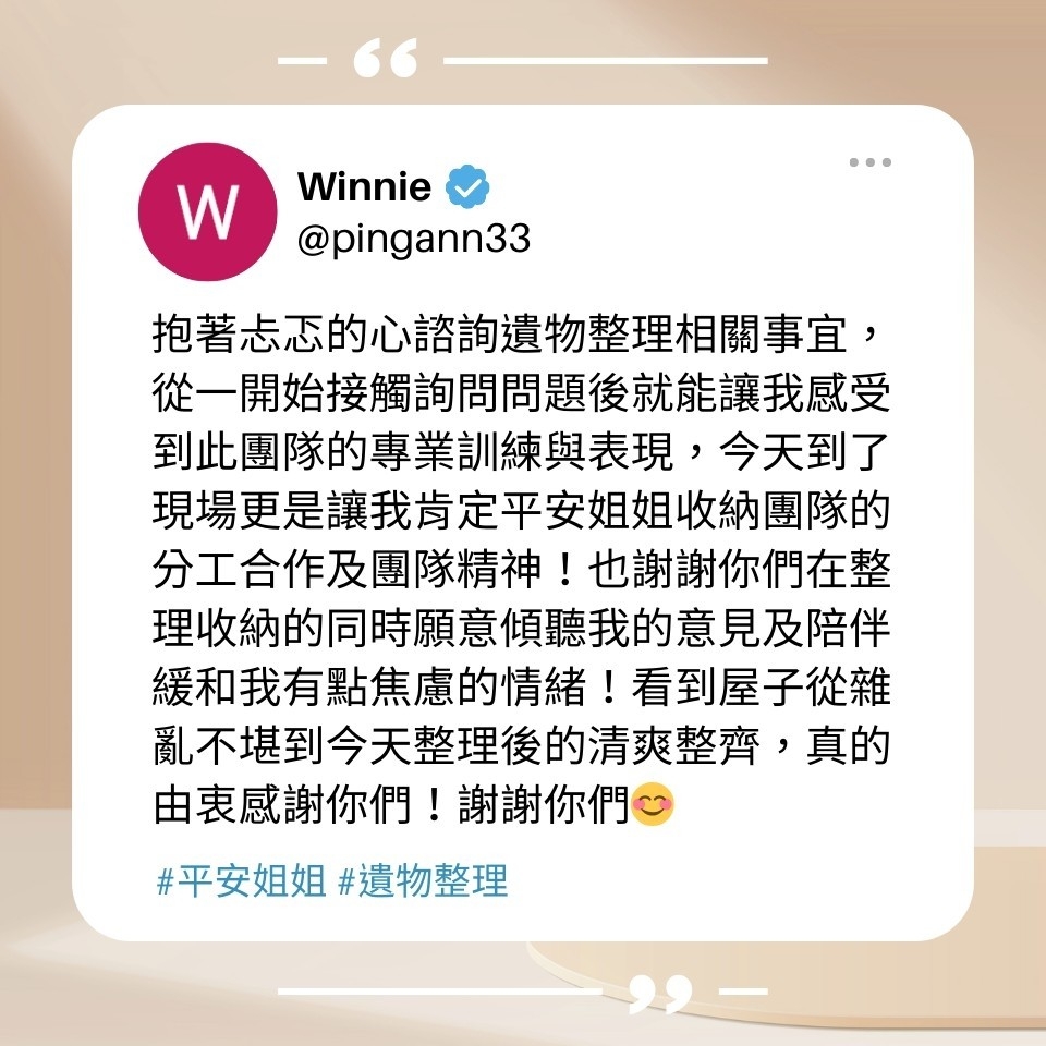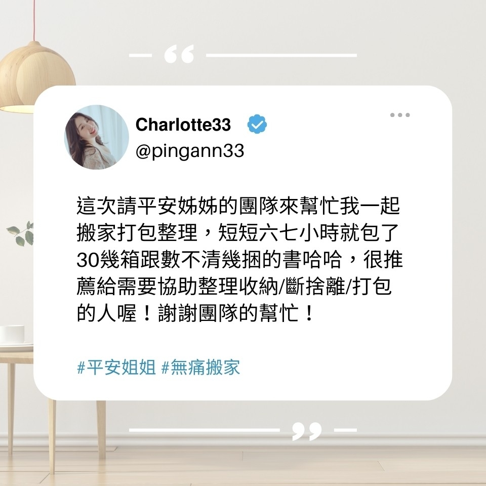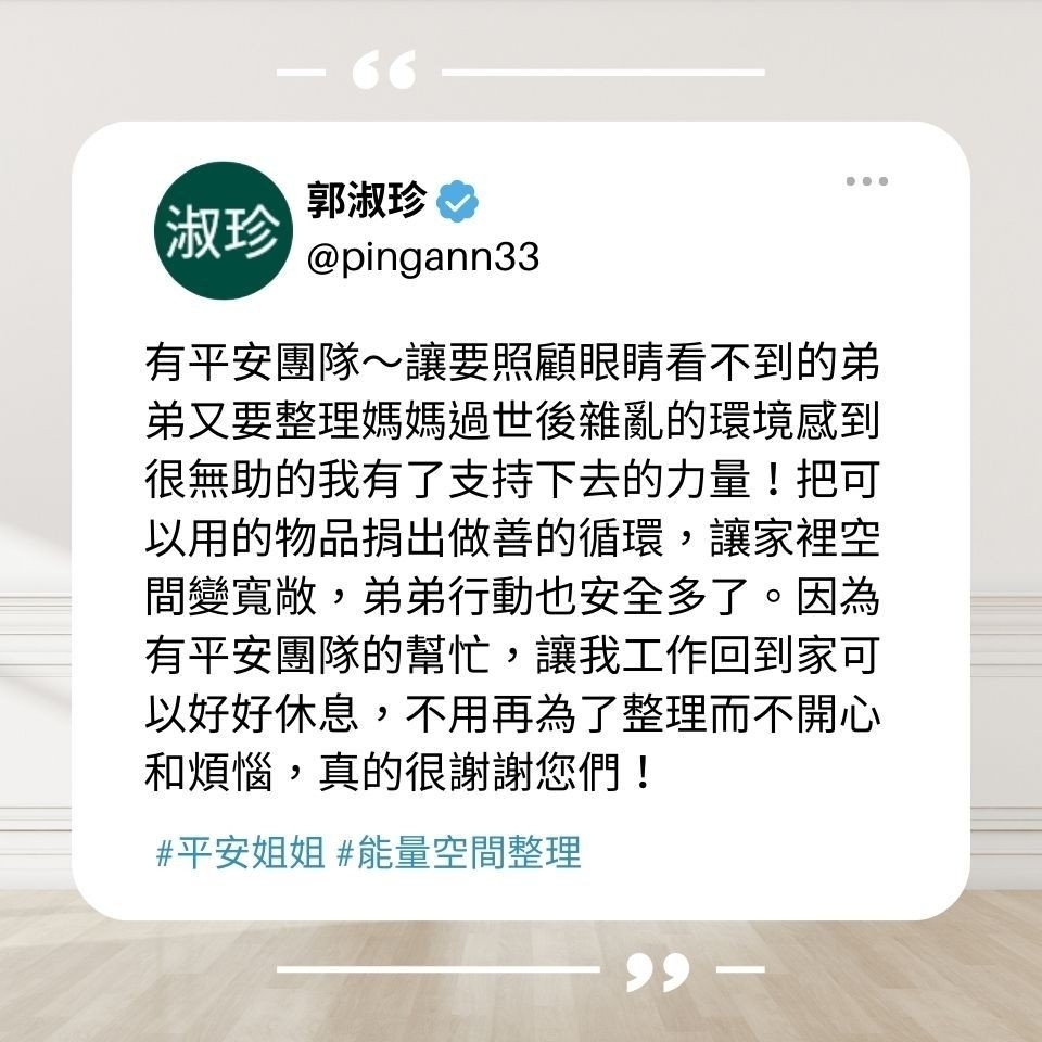 深度人員培訓,每一位整理師皆出自於平安姐姐之手親自培訓,專業與效率都是必備條件。