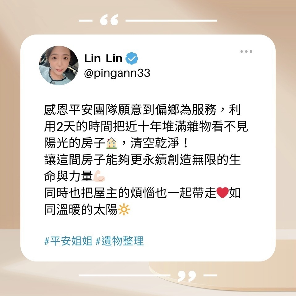 平安整理團隊替委託主創造了他們嚮往的高品質生活