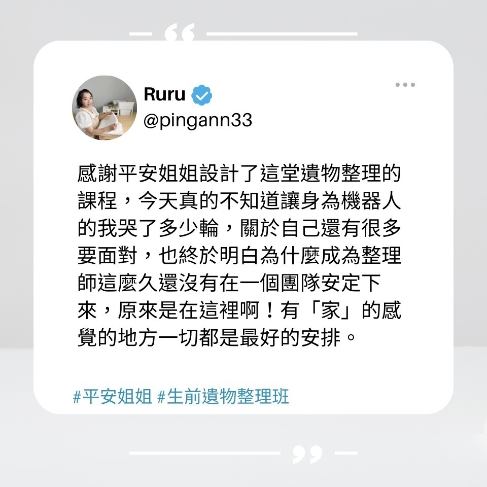 估價完畢後,定金可折抵平安團隊提供的任何服務,包含斷捨離線上諮詢、服務、課程、購書..等