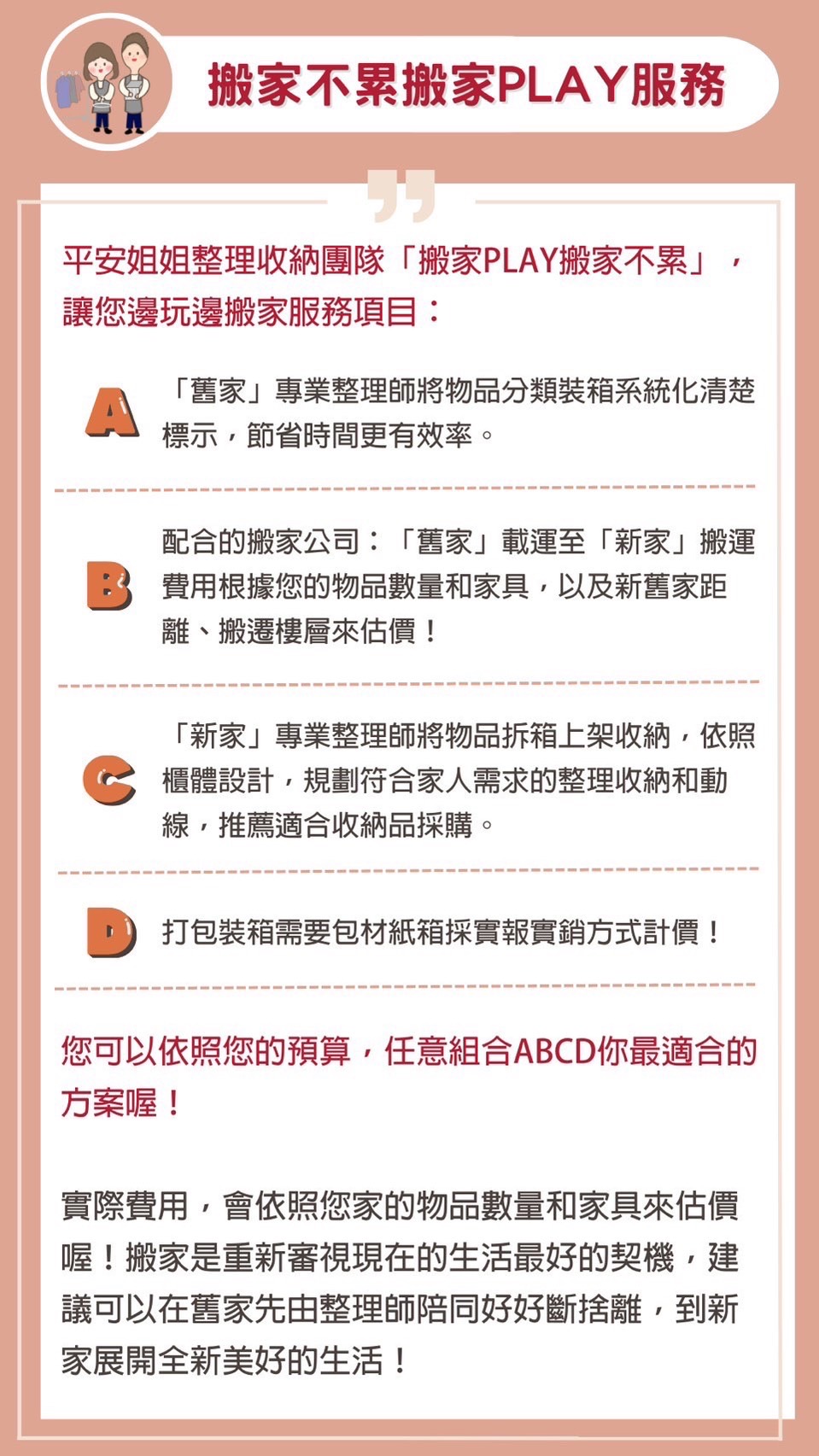 平安姐姐整理收納團隊會全力以赴給您最有效率最適合的呈現喔!提早完成提早結算喔!